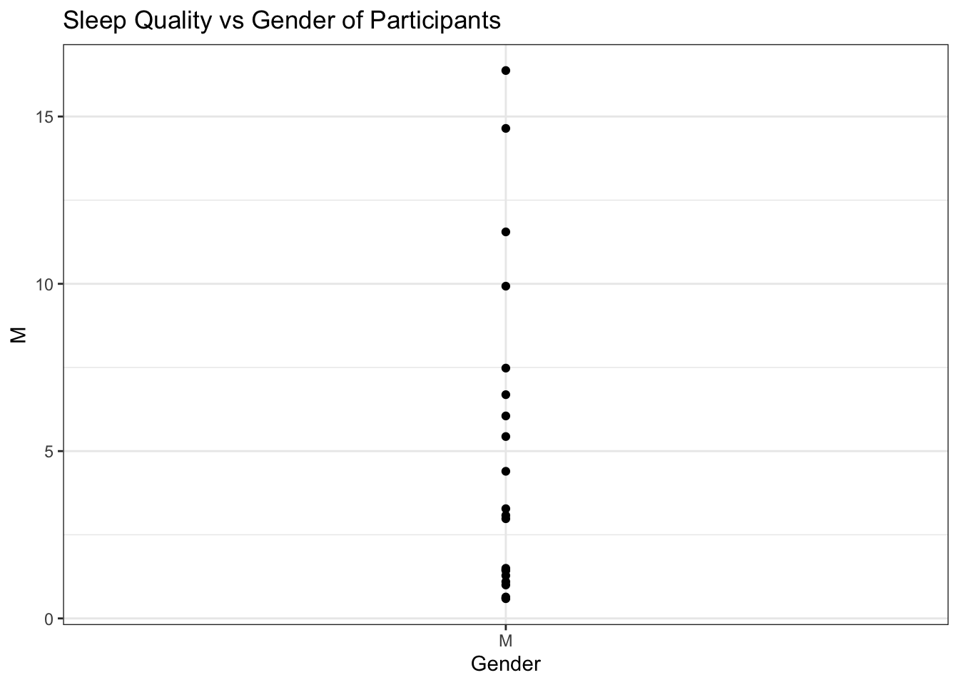 Since the authors of the data only studied males, we cannot conclude if one gender is inclined to have better sleep quality than another. We refrained from adding more geneder levels in the plot to be politically correct.