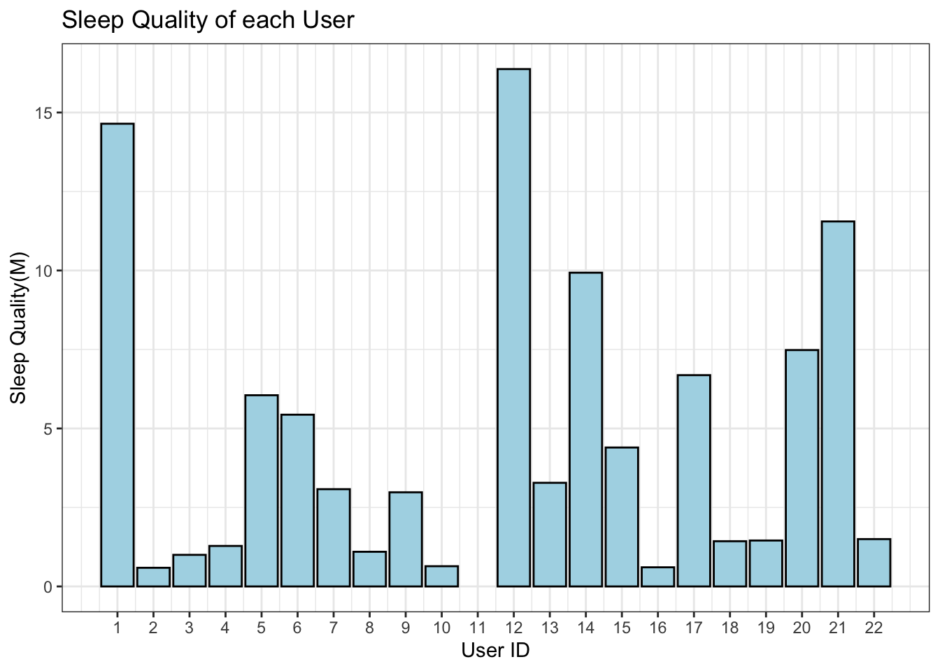 There are users that don’t follow a trend like user 1. One would think that user 1 would have low sleep quality given the differences but in fact ranks second in sleep quality.
